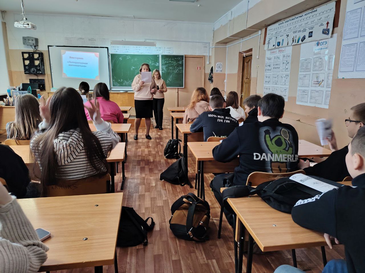 Мероприятие сопровождалась показом слайдов. Соревновались две команды: «Эрудиты» и «Знатоки». Викторина состояла из 6 конкурсов: разминка, математика в литературных произведениях, среднеарифметическое, числа в названиях произведений, цифровые стихи, сказки А. С. Пушкина в цифрах, и подведение итогов. Учащиеся быстро находили правильные ответы на поставленные вопросы. Видно, что у них развиты: наблюдательность, логическое мышление, смекалка, умение быстро работать в команде. Победила команда «Эрудиты» с минимальным отрывом. Математика учит правильно и последовательно мыслить, логически рассуждать. Не менее важна и литература, позволяющая человеку выражать свои мысли, чувства, эмоции. Только в тесной взаимосвязи этих наук человек будет чувствовать себя спокойно, уверенно, комфортно в этом огромном мире загадок. Викторина прошла очень весело и увлекательно!