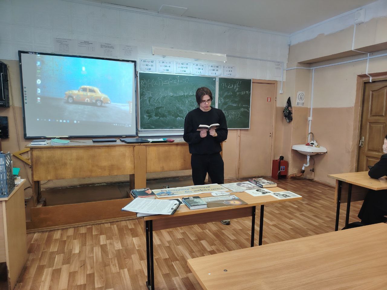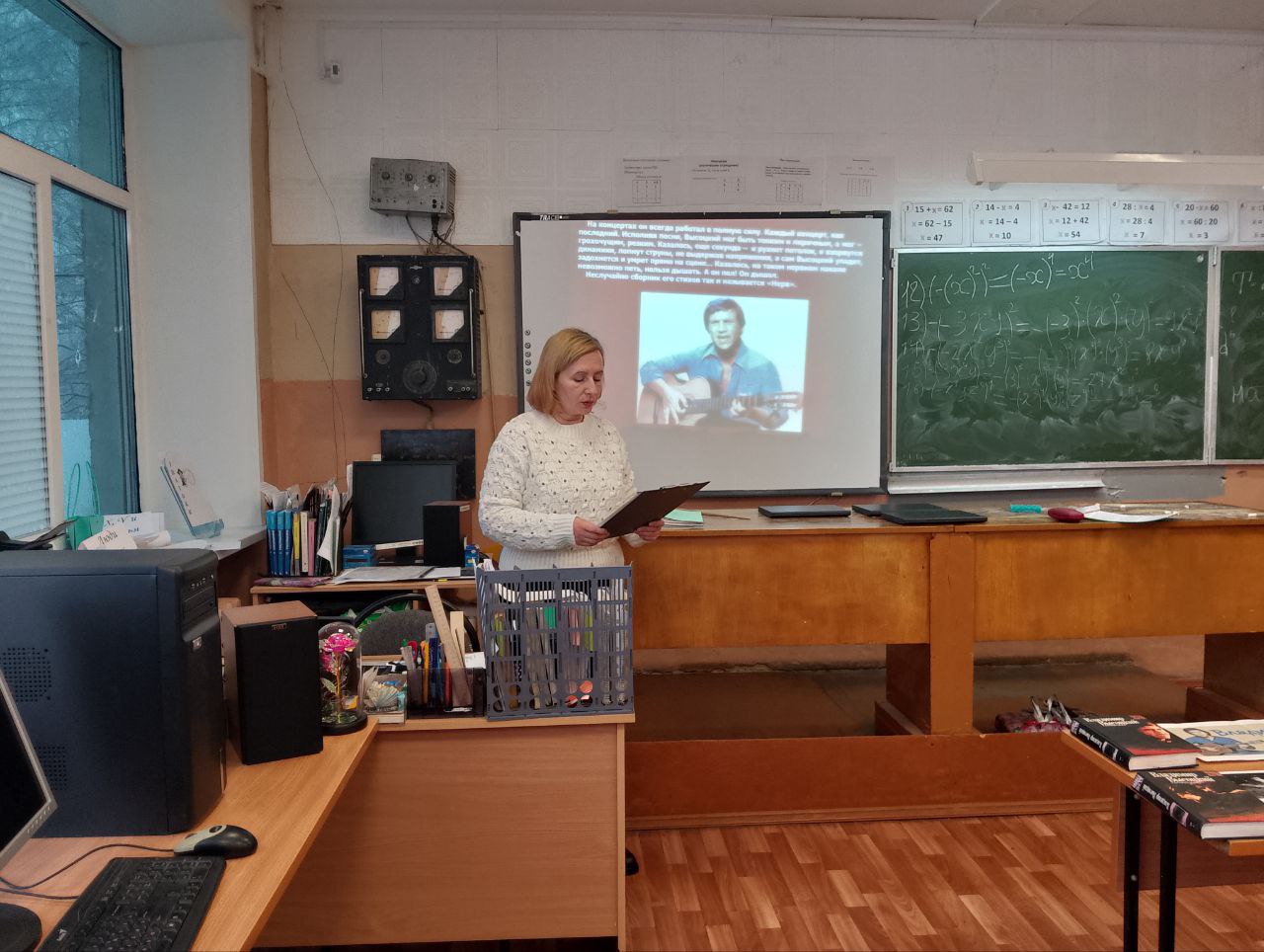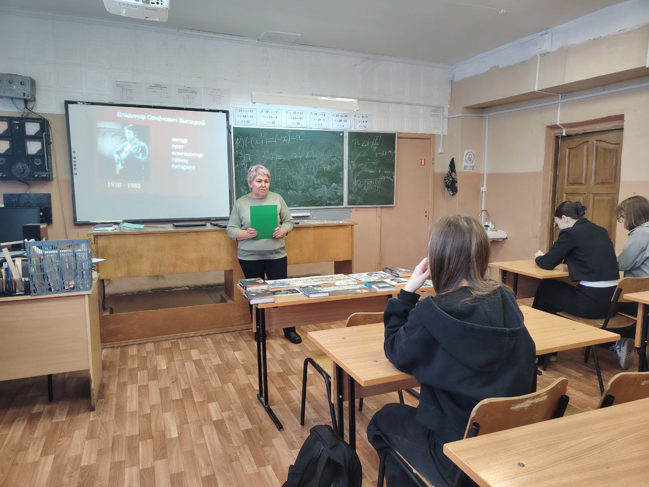 учеников с биографией и творчеством поэта, с его самой большой любовью, рассказали о том, каким он остался в воспоминаниях родных, близких, коллег. Также учащиеся с большим интересом посмотрели электронную презентацию «Владимиру Высоцкому посвящается» На протяжении всего мероприятия звучали стихи и песни Владимира Высоцкого.
